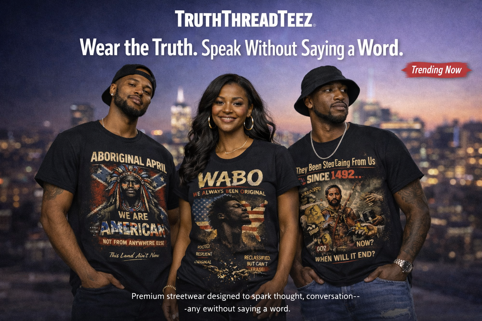 We create bold, thought-provoking apparel centered around identity, history, and truth. Every design is built to spark conversation, challenge perspectives, and give people a voice without saying a word.